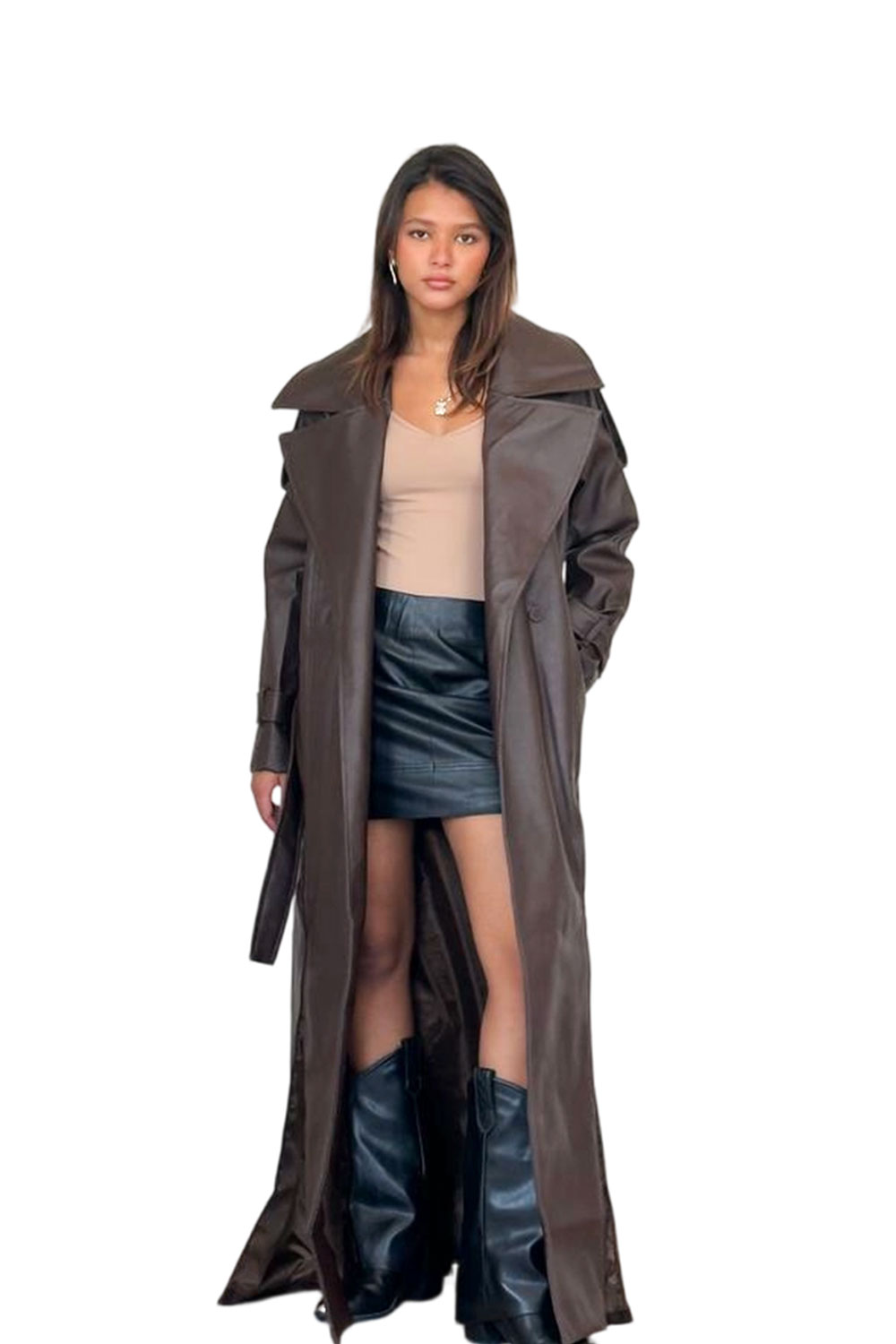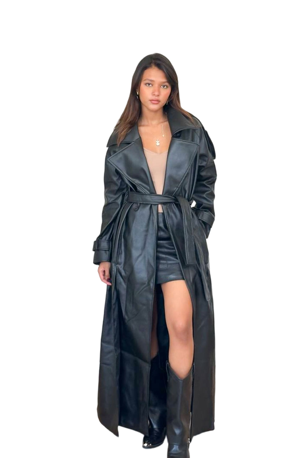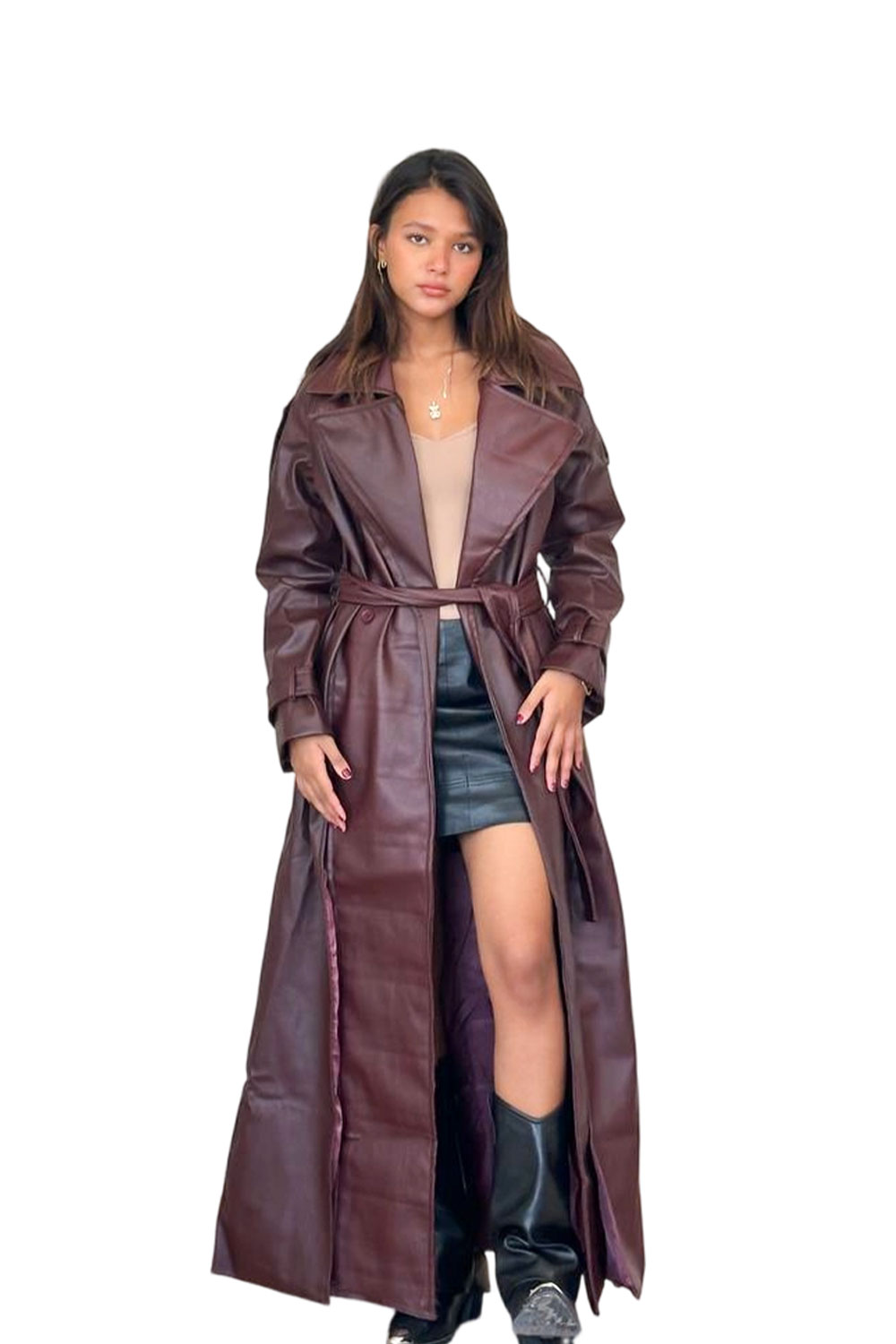 كوت جلد مع حزام